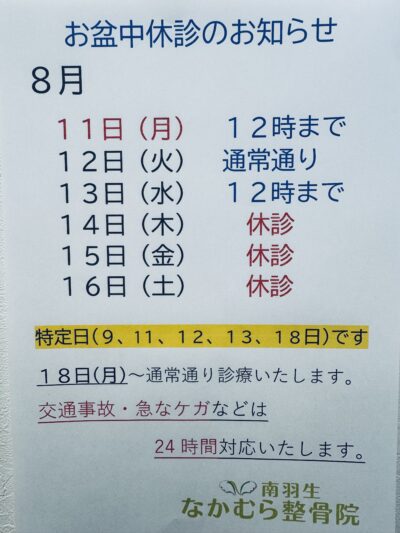 お盆中休診のお知らせ 2025